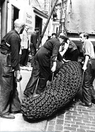 1962 Umzug in das erste eigene Gebäude in der Gotenstraße mit erweiterten Lager- und Konfektionierungsflächen für Stahlseile, Tauwerk und Planen.